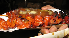 Of course one of the SOP in FOOD TRIPS here in the Philippines is chowing down some of our famous and infamous street foods! Yes your favorite ihaw-ihaw (in English - grilled!), turo-turo (point), and tusok-tusok (speared? haha I'm not sure about the correct English translation of that!) food can be bought at Il Mercanti Food Bazaar. I mean, seriously, this is a staple! No food trip should be without it. And that's where my dear cousin headed and had some yummy Chicken and Pork ISAW.