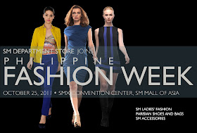 Anyway, so the first show I got to watch was PFW SS 2012 SM Ladies' Fashion show last Tuesday night. I was pretty excited coz I was able to meet up with some of our blogger friends. Though I wasn't feeling totally ok that night, I really wanted to see the show. I didn't had a lot of tickets to PFW and I almost always looked out for SM Ladies Fashion coz well.. SM department stores are all over the nation. I think they have more than 50 stores already. With SM as a household name, everyone is indeed interested in what they have in store for us this season. Unfortunately, I am saddened to tell you my dear readers that my photos during the show aren't that nice. Not just coz I was seated a bit far off BUT because I could barely see the models on the runway and only had tiny glimpses of the shoes. Quite disappointing mind you coz I really wanted to see the latest SM Parisian shoes. But don't worry dears, I have a copy of their catalog for this coming season which I will share with you in a bit. In the meantime, here are some of my favorites and the best pics I got of the runway during the fashion show for SM Ladies' Fashion and SM Parisian shoes and bags.